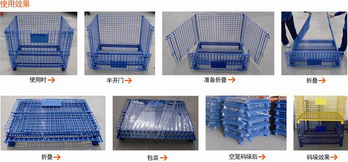 产品的用途:1、主要用于不规则物品周转与存放,不容易散落。2、码垛4层,一目了然,无危险存放,方便管理。3、码垛后任意打开上门,存取物品,方便整存零取。4、空仓储笼折叠后,码垛存放,节省仓库和周转物流空间。