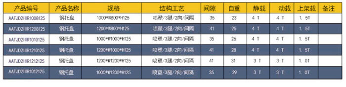 四向三腿——方管面板 技术参数说明: 产品编号: AACJD4ⅢC1212150 产品名称:方管铺面川字钢托盘 产品规格: 1200*1200*150 产品自重: 29kg 防锈工艺: 静电沙纹喷塑 产品静载: 2000KG(均匀载重) 产品动载: 1.500KG(均匀载重) 产品上架: 1200KG(均匀载重) 主要用途: 仓库、车间周转、物流仓储